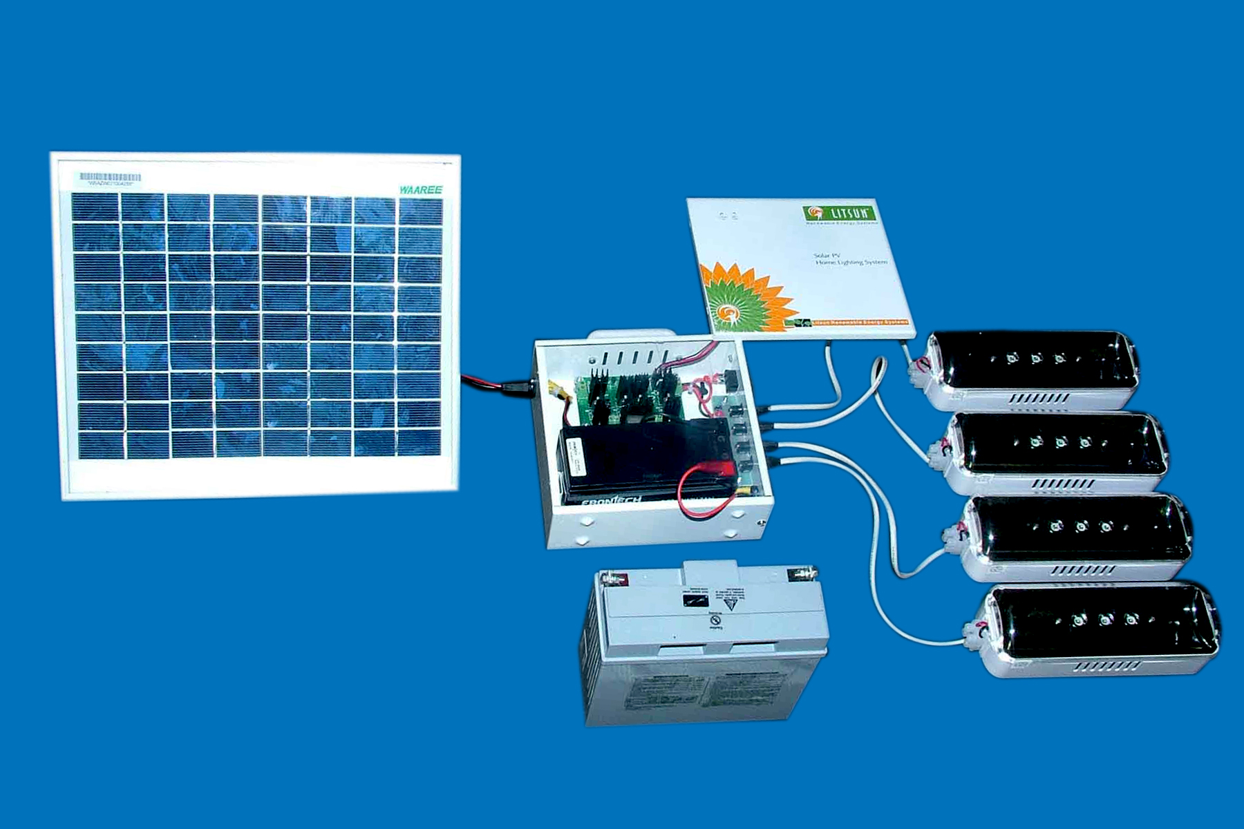 Solar modules for an SHS would range between 20-50 Wp. They are mounted on a rooftop or atop a pole.